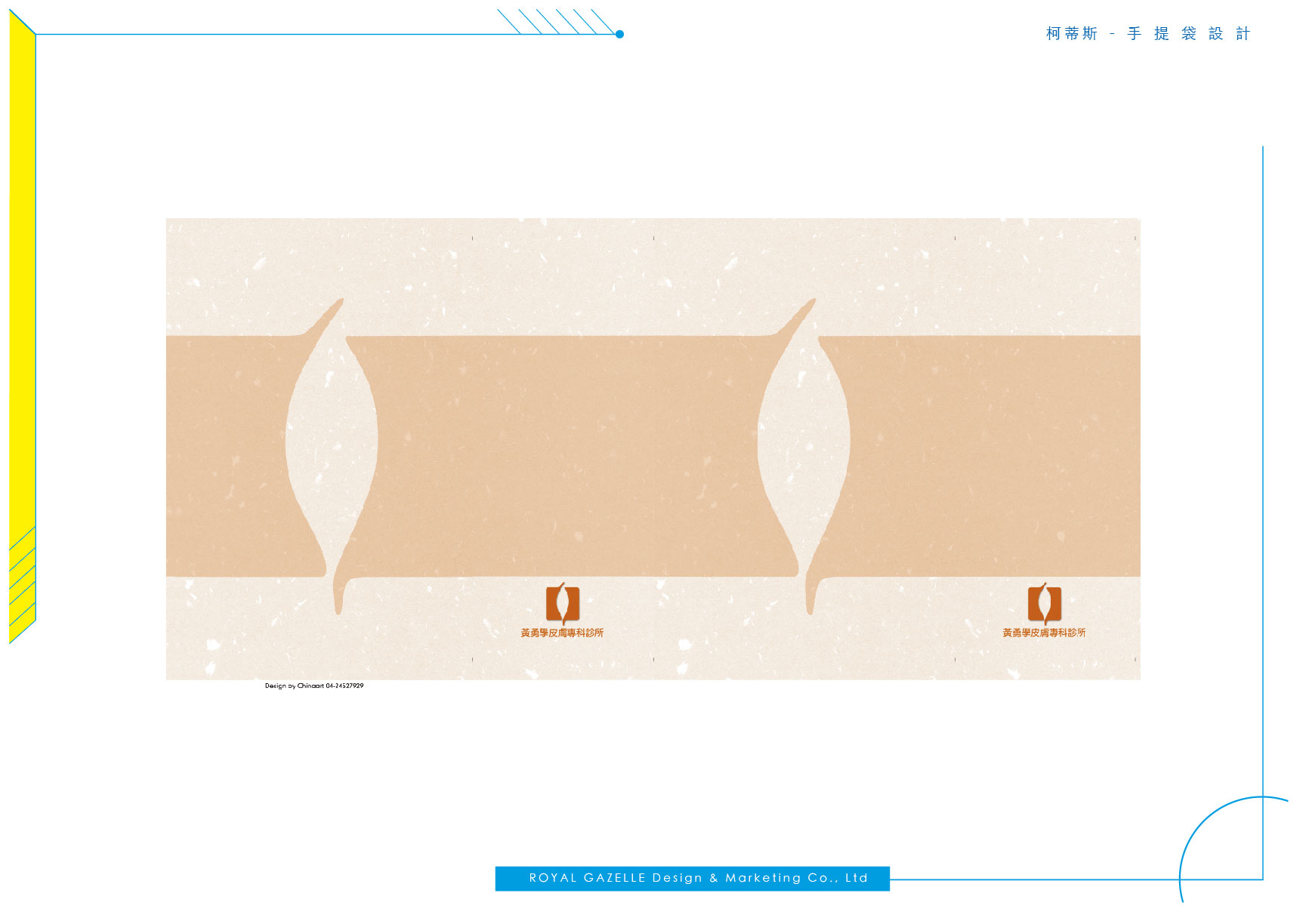 為柯蒂斯美容所設計LOGO符合其清新、自然、草本之風格,由兩色塊組成之葉片圖形象徵其自然,顏色則採用新鮮的草綠色,整體視覺清新舒爽。 手提袋則讓色塊延伸,成為如緞帶一般的圖形,增加包裝的感覺。