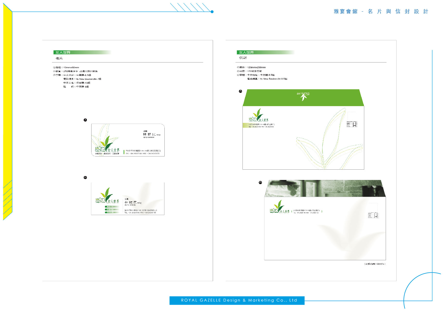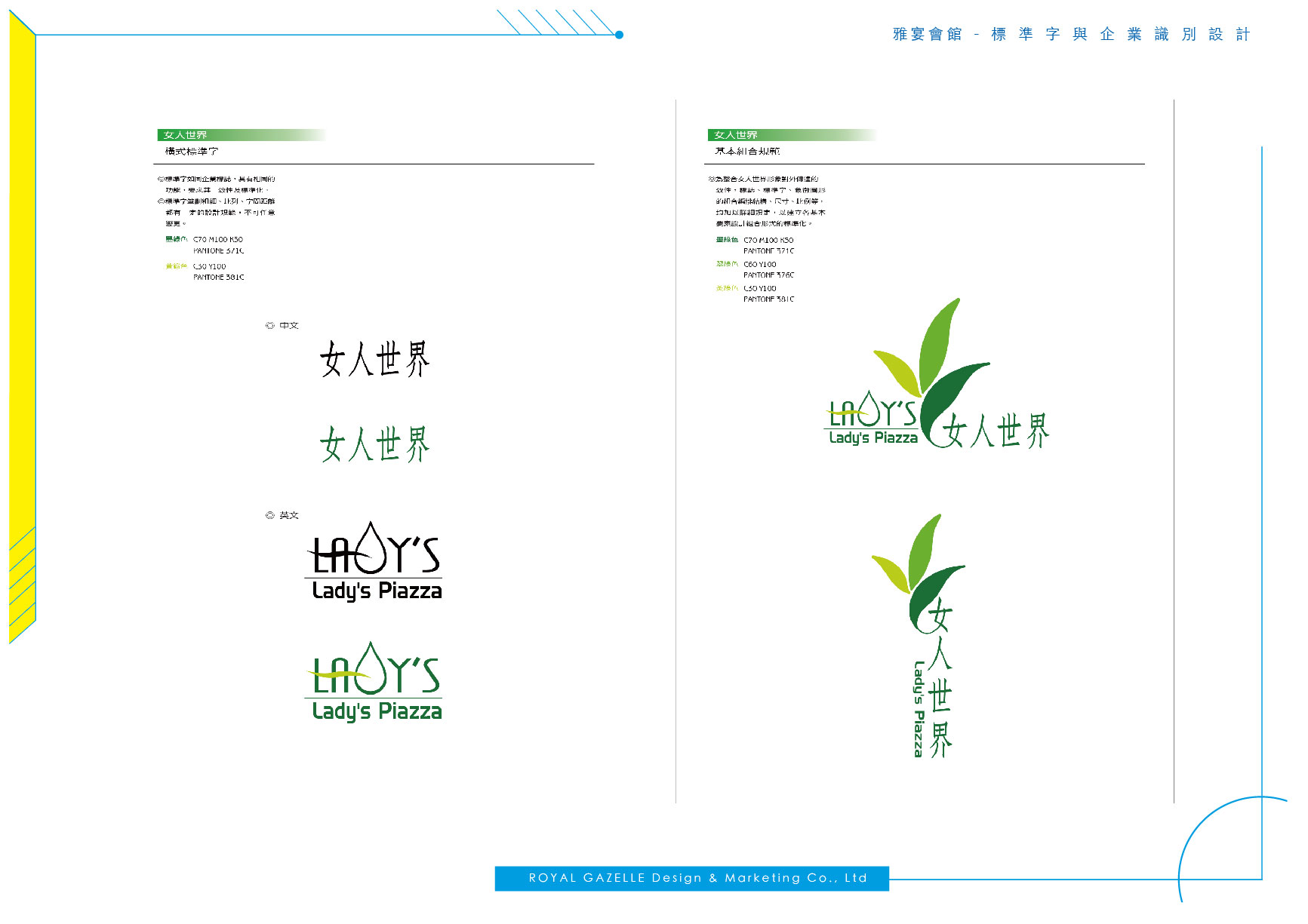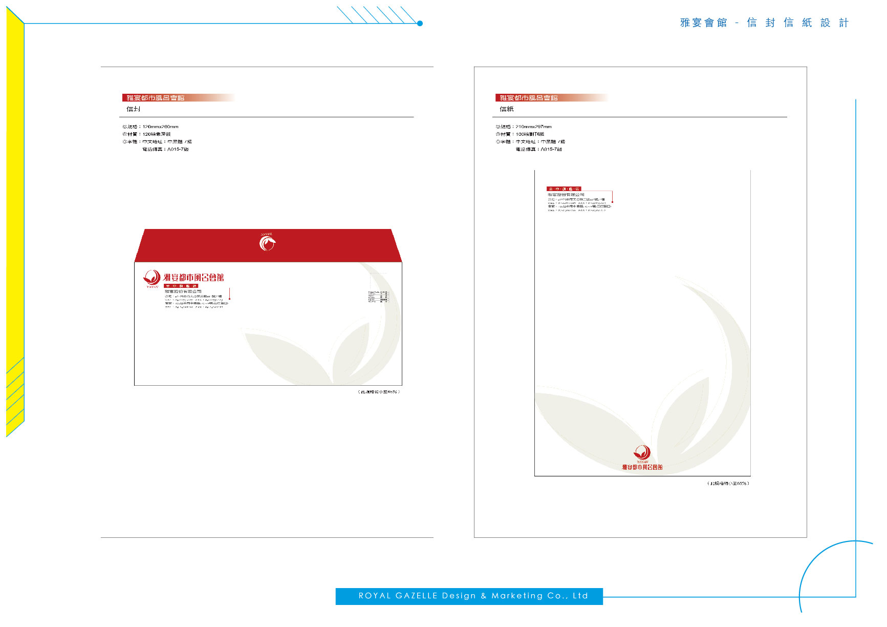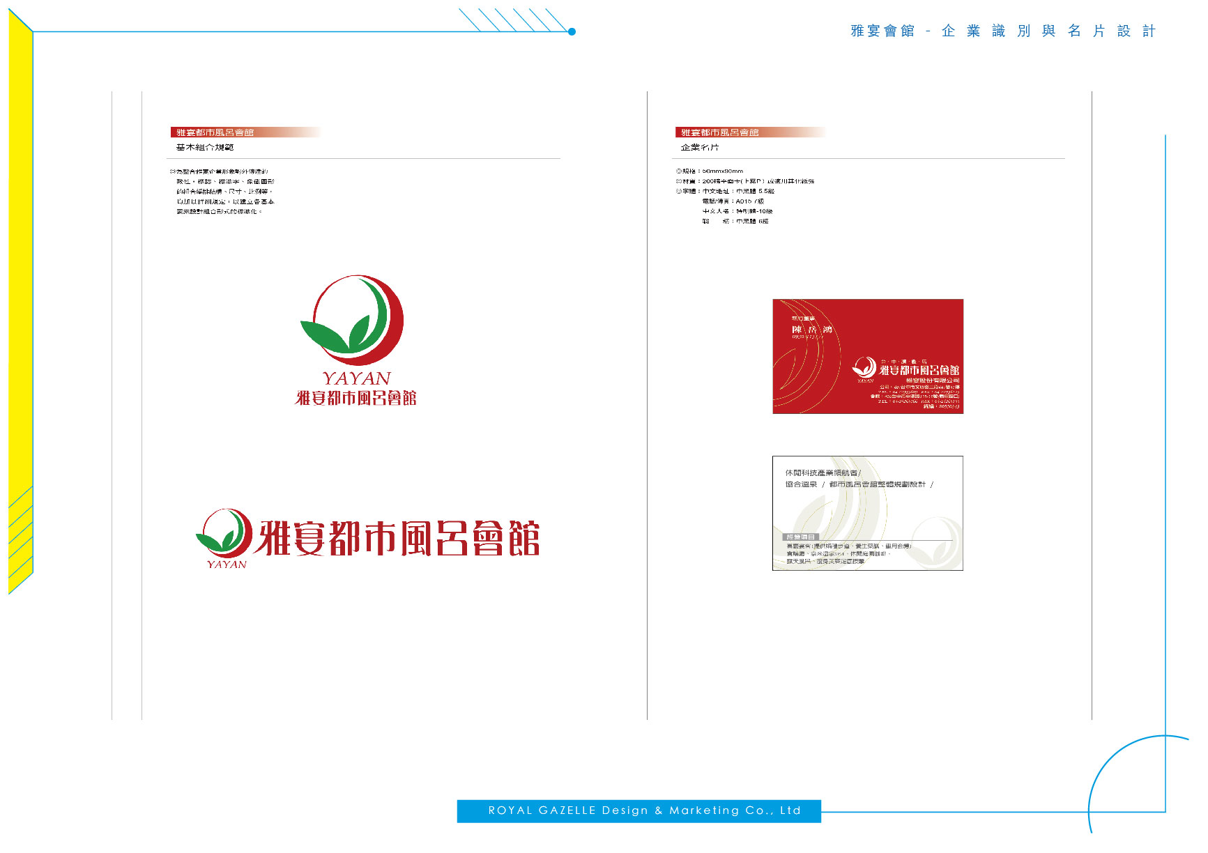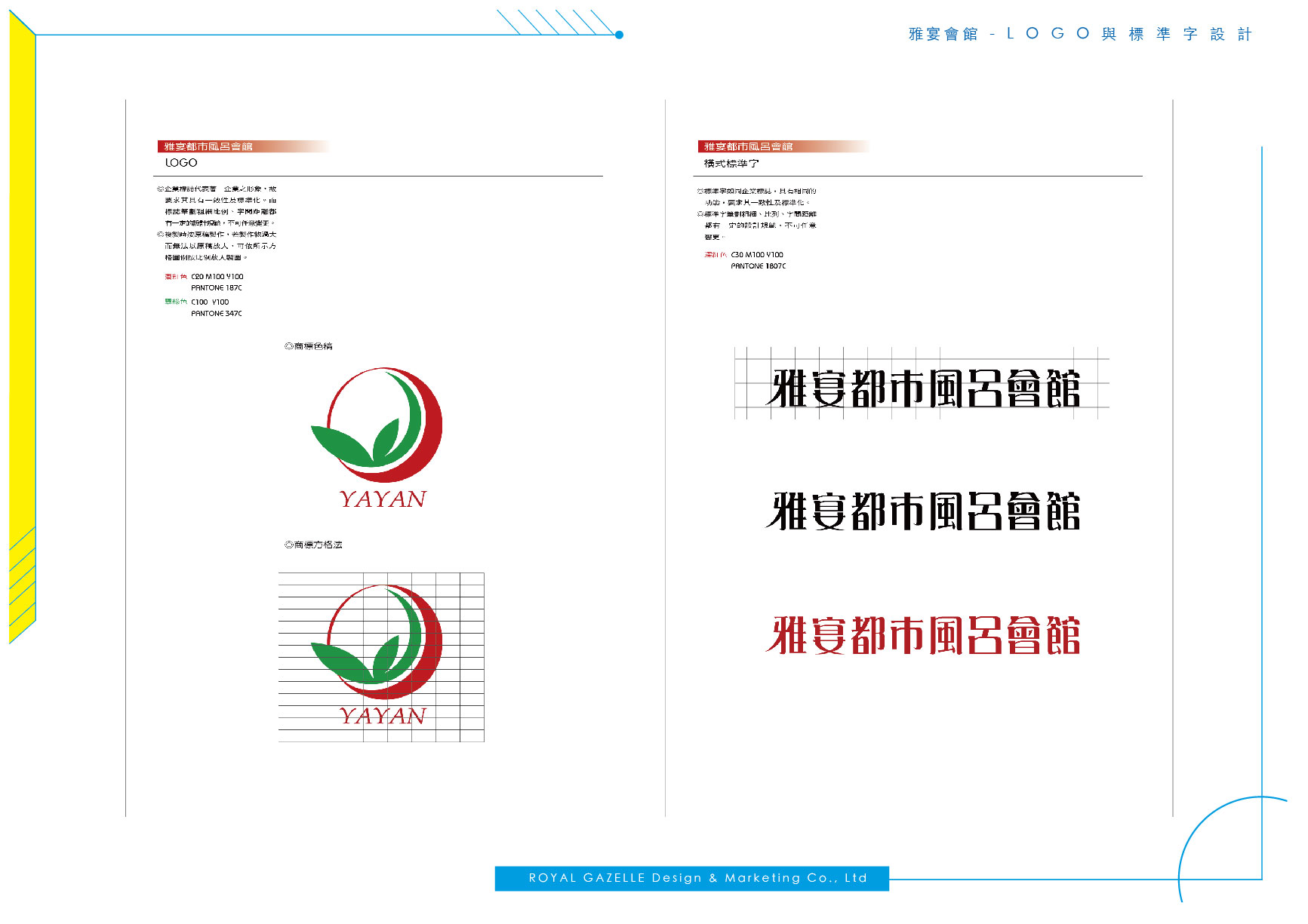 替雅宴會館所設計之完整VI識別,整體以葉片圖示為主軸,象徵其自然、草本、使人舒暢身心之療效。