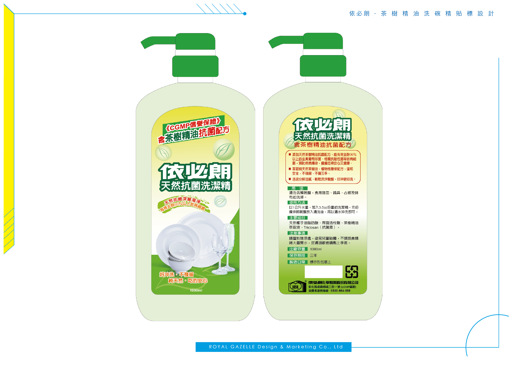 為依必朗公司所設計的商品貼標、商品包裝盒與廣宣插卡,符合各個產品不同之特性設計,依必朗公司商品多以強調天然為其核心理念,因此貼標與包裝之設計多加上製造該產品之天然植物,給人安心健康的感受。
