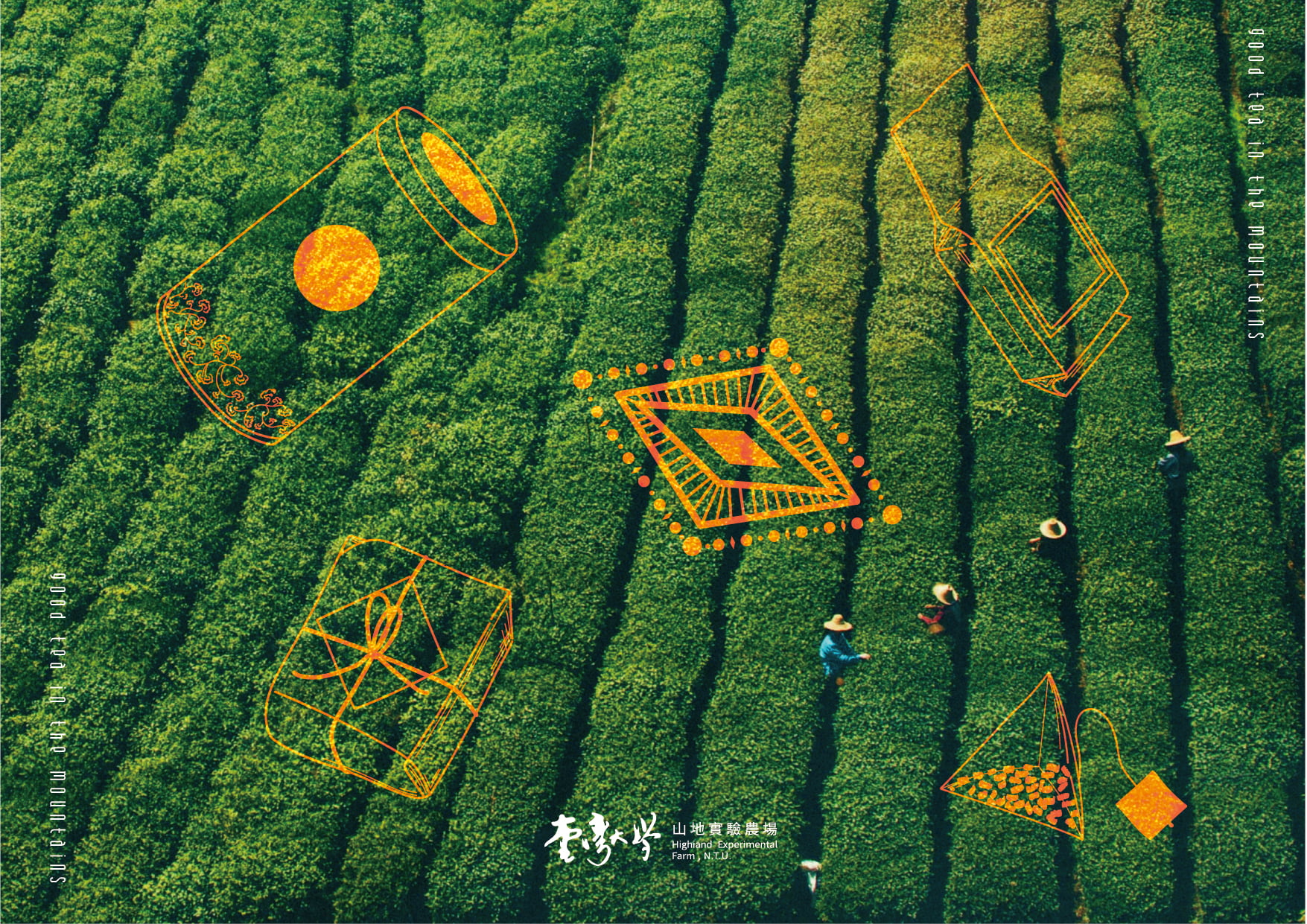 烏龍茶之包裝設計採用黃黑配色,大膽地跳色手法,黃色象徵著茶湯的色澤,以黑色山水帶出現代上海風的風格設計。 小葉紅茶以農場理念:保存與延續賽德克族文化。為設計主軸,將賽德克族之傳統信仰祖靈之眼的圖騰帶入包裝設計中,與其他紅茶品牌做出區隔,也增加此品牌之文化深度。