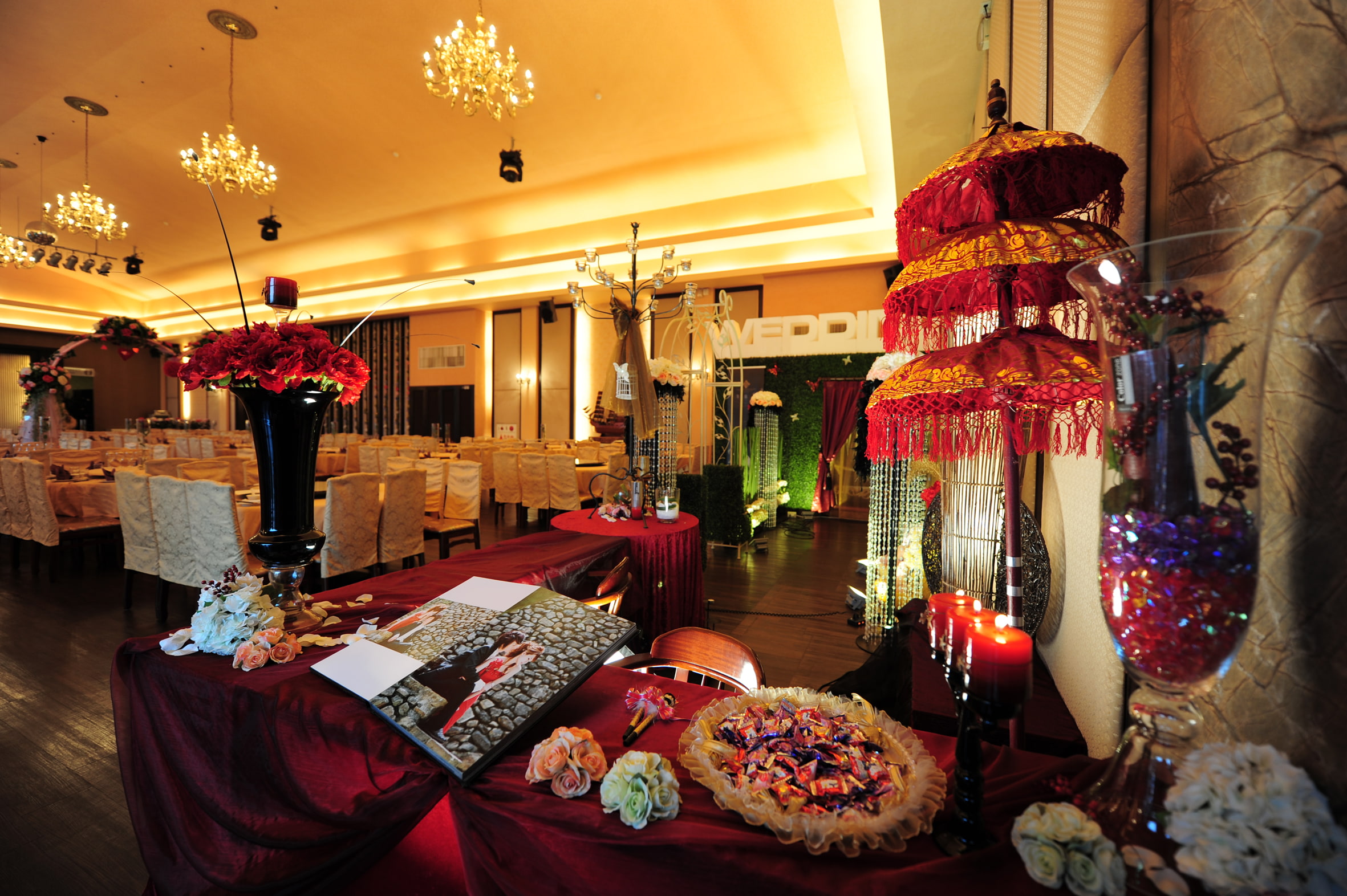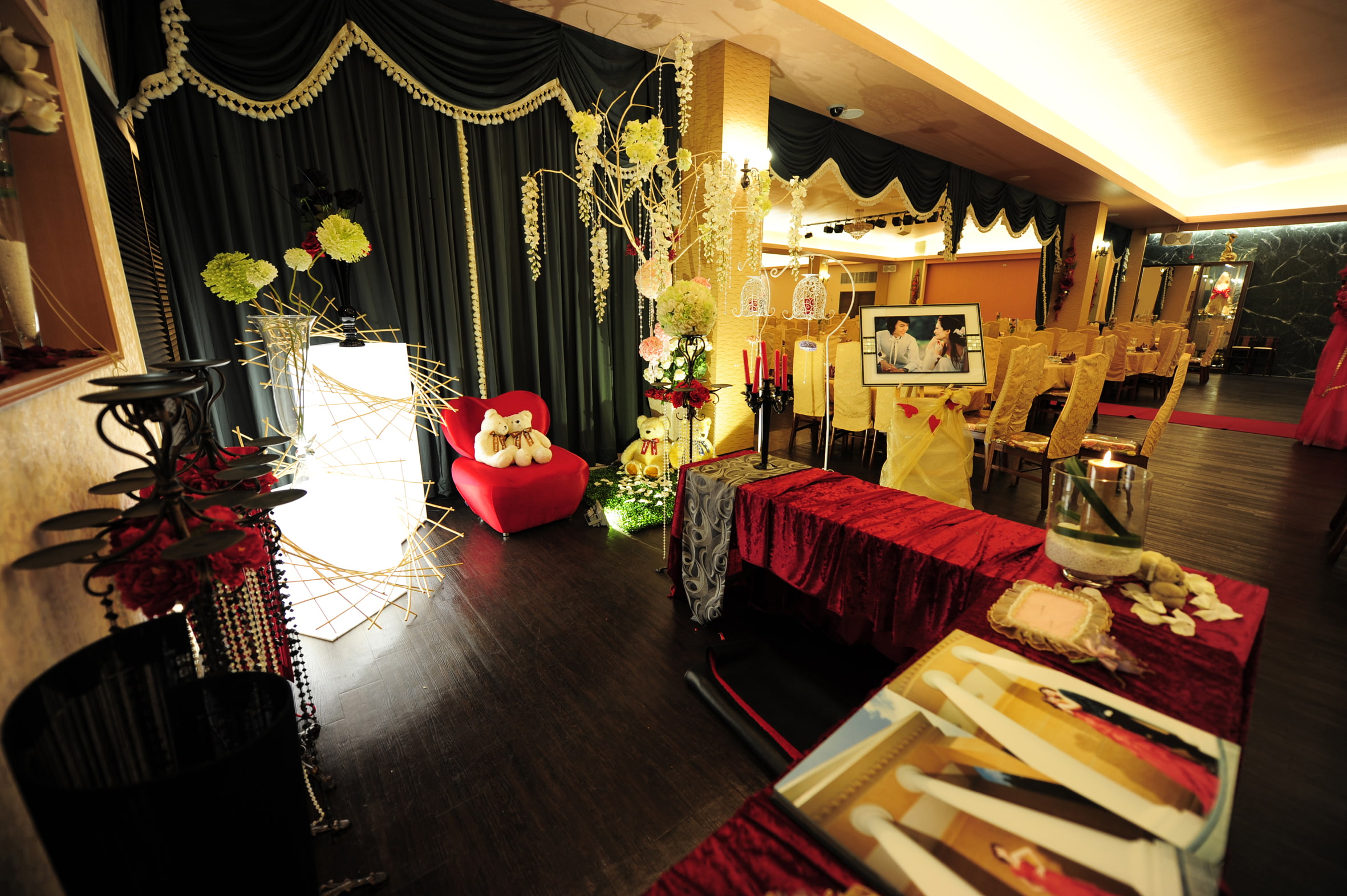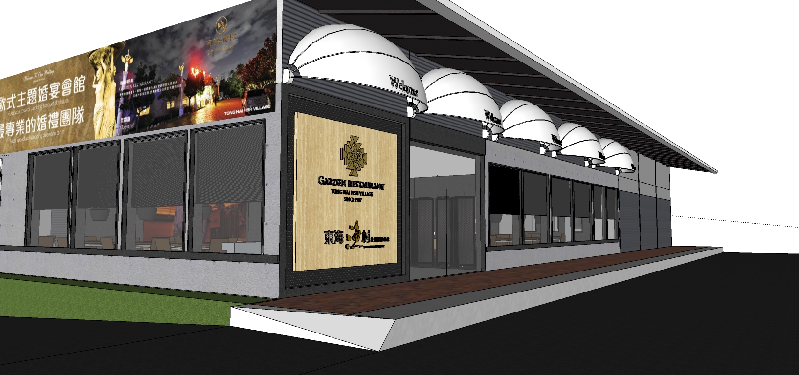 鄭面思考室內設計東海漁村花園婚禮會館,台中西屯區30年老字號名店,主打新鮮海產多元化料理尾牙春酒/除夕年菜,占地5000坪相當的寬敞,擁有寬闊的戶外花園婚禮場地,以及浪漫高雅的婚宴會場空間,提供360度全景VR 4K高畫質攝影設備,給顧客最高品質的饗宴。