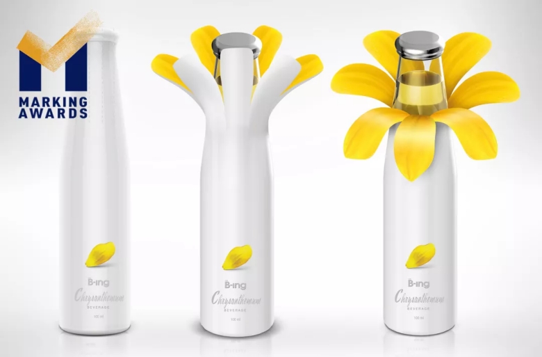 作品簡介:當雙面打印的收縮膜包裝沿著瓶蓋周圍的虛線被撕開時,它會呈現出一朵帶花瓣的盛開花朵的樣子。 「B-ing」有4種口味,分別是蘭花味、菊花味、荷花味以及蝶豆花味。這一新的包裝肯定會給消費者們一種有新鮮的自然花香的經歷和感受。