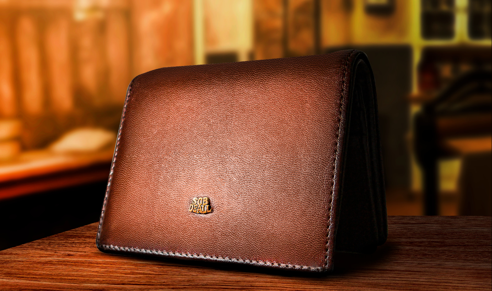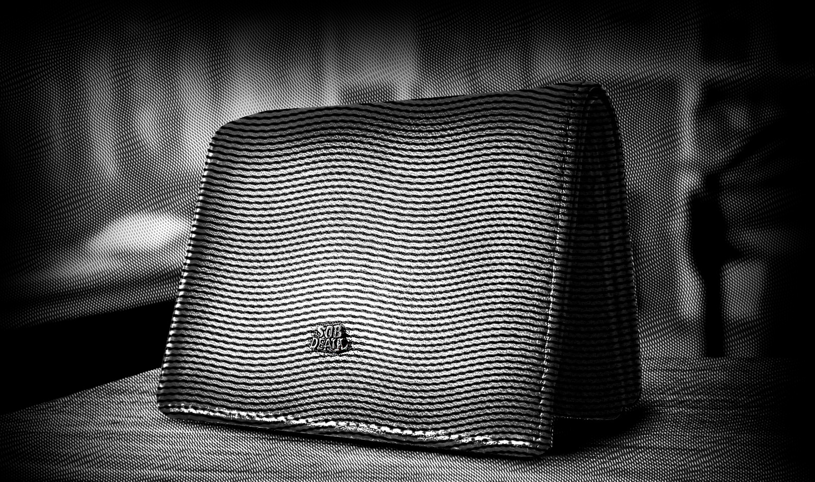 這邊使用的是新的皮革表面翻拍作為素材,再把原來正面圖層分割為暗面跟亮面,分別強化邊角跟中心反光效果